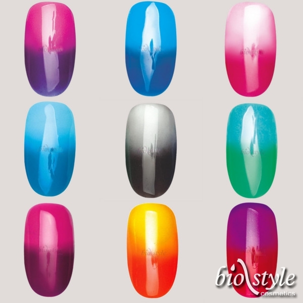 barevný gel měnící barvu podle teploty.